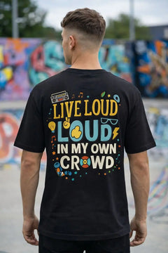 Live Loud in My Own Crowd Graphic T-Shirt for Men – 100% Cotton Oversized Streetwear Tee