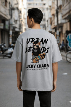 The Urban Legends Lucky Charm Skate Oversized T-Shirt is designed for those who live the urban grind with a fearless attitude. Featuring a bold skater raccoon graphic with “Urban Legends” typography and Lucky Charm messaging, this tee captures movement, confidence, and street energy.